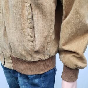 Vintage CROCODILE Leather Suede Bomber Jacket Full zip Italy Made Tan/Camel