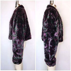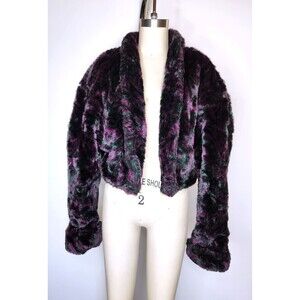 Vintage 80s 90s Faux Fur Jacket Cropped Coat in GORGEOUS COLORS - Purple & Green 🥰