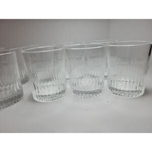 Vintage CROWN ROYAL Embossed-Bottom Round Rocks Etched Whiskey Glass (set of 8)