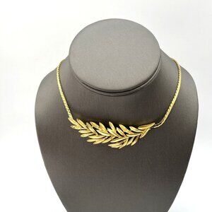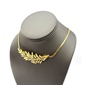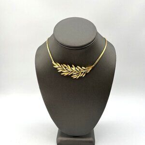 Vintage CROWN TRIFARI Laurel Wreath Pendant Necklace Gold Tone 17”