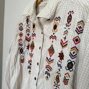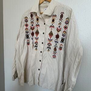 Vintage CST Sport Embroidered Aztec Western Beige Size 2X Button down
