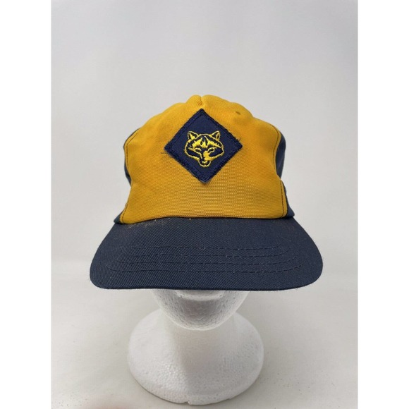 Vintage CUB SCOUTS Wolf Cubs Boy Snap Back Hat Cap BSA Yellow Navy Small Medium