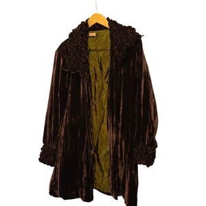 Vintage CUPCAKE Crushed Velvet Jacket Coat Open Front Ruched Accents Plum Purple