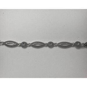 Vintage CW Sterling Silver Marcasite Link Bracelet Art Deco Revival