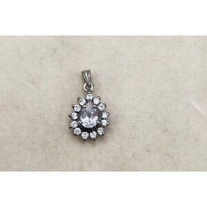 Vintage CZ Pendant Pear Shaped Center Stone WIth Accents