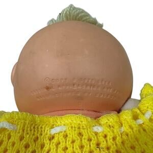 Bring back childhood memories with this vintage Cabbage Patch Kids soft body doll dressed in a charming yellow and white knit outfit!
