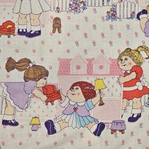 Vintage Cabbage Patch Kids Twin Bed Sheet 66 X 94 Fabric Upcycle White Pink