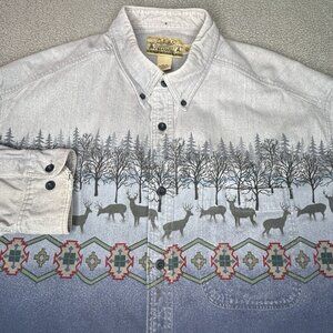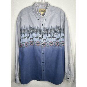 Vintage Cabelas Chamois Shirt Mens 2XL Blue Ombre Deer Aztec Button Up Soft