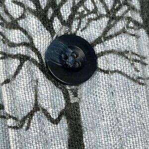Fraying, hole, stains on sleeve and near buttons. Distressing/small light spots near hem. See listing photos for details & garment measurements.