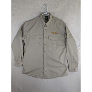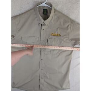 Vintage Cabelas Safari Shirt Mens XLT Beige Khaki Short Sleeve Button Down Logo
