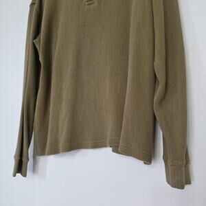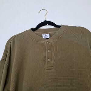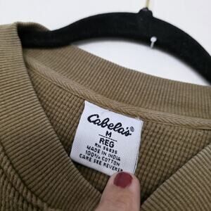 Vintage Cabelas Waffle Knit Thermal Henley Top Men M Olive Green Gorpcore Cotton