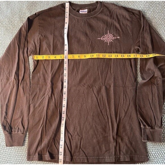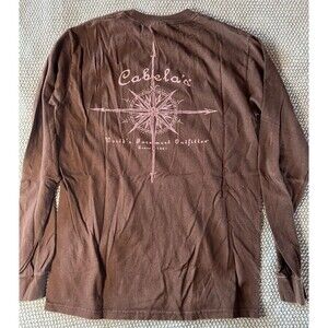 The Vintage Cabela's World Foremost Outfitters Long Sleeve T Shirt is a classic piece with a graphic print featuring the iconic Cabela's character. Made of breathable cotton jersey fabric in a timeless brown color, this pullover shirt is perfect for all seasons and various activities such as track and field, cross training, hiking, and squash. The vintage design and 90s theme add a unique touch to this unisex long sleeve shirt, making it a versatile and stylish addition to any wardrobe.