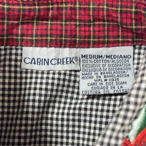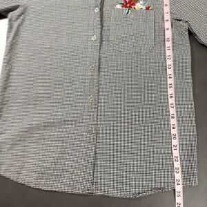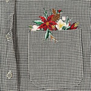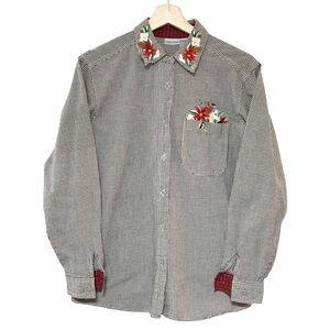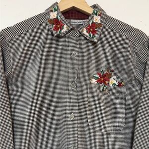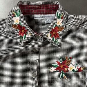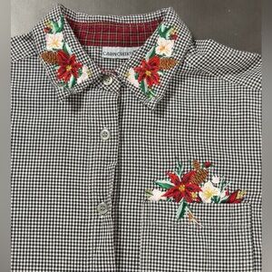 Vintage Cabin Creek Check Holiday Embroidered Floral Pinecones Button Up Top