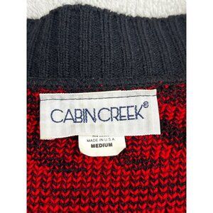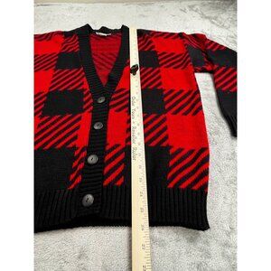 Vintage Cabin Creek Womens Medium Red Black Plaid Cardigan Sweater Checkerboard