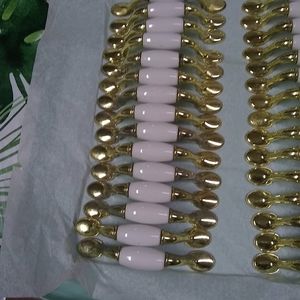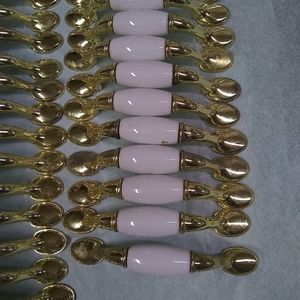 41 Vtg Salem Collection Polish Brass & White Ceramic Drawer Cabinet Pull Handle