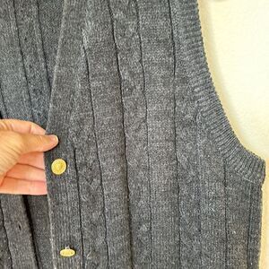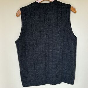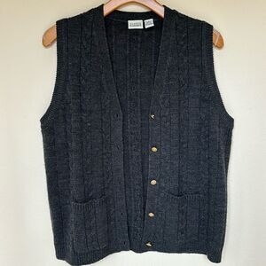 Vintage Cableknit Sweater Vest Charcoal Gray Cardigan Size Mens Xl