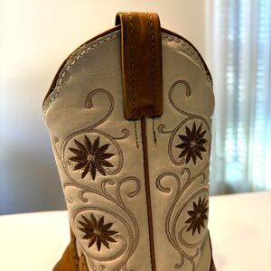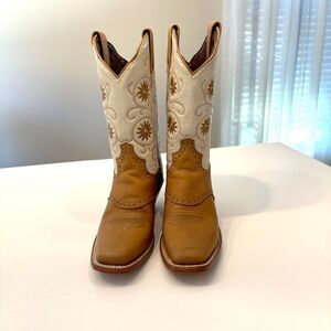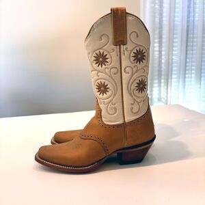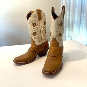 Up for sale I have this pair of vintage Caborca Women's Cream Tan Leather Floral Embroidered Cowboy Boots. US Size 7. Huarache size 24. These boots are in excellent condition. Take a look at the photos and feel free to message me with any questions.