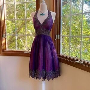 Vintage Caché purple silk beaded halter dress in size 4! Fits like an S/M💜🔮