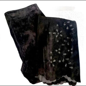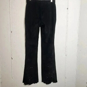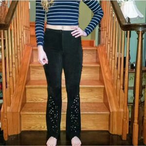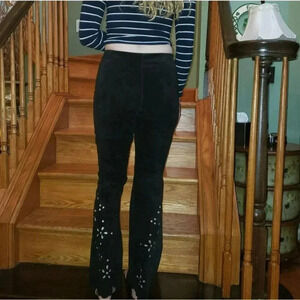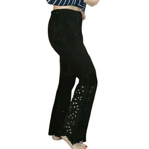 Vintage Cache 2 Hippie Boho black suede laser cut out flare retro pants