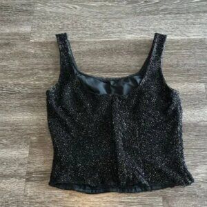 90s, vintage top, Y2K fashion, beaded silk tank, Cache clothing, party top, going out top, retro glam, black sparkly top, date night top, clubwear, festival top, vintage, minimalist glam, elegant vintage, retro, 80s, Throwback, cropped tank, Indie Sleaze, early 2000s, grunge, glam, metallic, edgy, Disco, Balletcore,Whimsigoth, celestial, Summer, Concert, Festival Fashion, Structured, Evening, Elegant, Festive, Date night, embellished, corset-style
