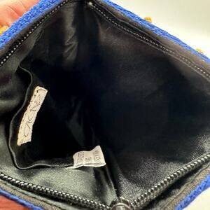 Vintage Cache Beaded Coin Purse Lined Zipper Pouch Black Aztec Print Mirrors