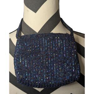 Step back in time to the glamorous '90s with this stunning vintage Cache beaded bag! Imagine the way the tiny iridescent beads catch the light, shimmering with a beautiful mix of black, blue, and purple tones that will make you feel utterly captivating. This isn't just a bag; it's a piece of nostalgic elegance, a feeling of confident style that's perfect for a night out or a special occasion. The classic shoulder bag silhouette and the intricate hand-beaded design are hallmarks of the Cache brand from its golden era. You'll find yourself reaching for this bag to add a touch of sparkle to a little black dress or to elevate a chic, modern outfit with some vintage flair. What dazzling memories will this gorgeous bag help you create?
