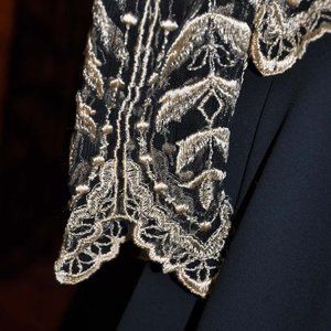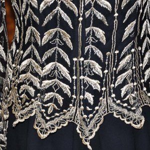 Vintage Cache Black Chiffon 3/4 Length Long Sleeved Dress With Gold Embroidery