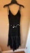 Chic black dress with elegant bead detailing. Features a flowing hem and delicate straps.