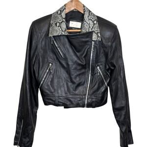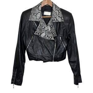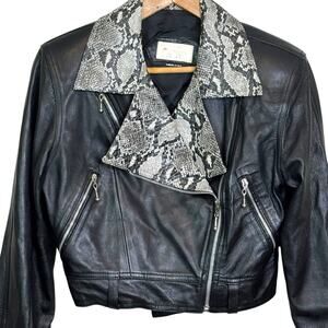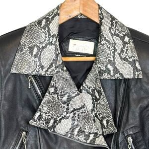 Vintage Cache Black Moto Jacket with Snakeskin Collar Motorcycle Biker y2k