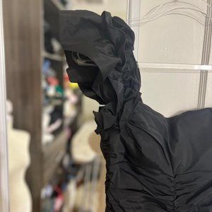 Vintage Cache Black Ruched Dress with One Ruffled Shoulder Strap - Size 4 is in excellent condition! This dress has a padded top, so don't worry about a bra! It's also fully lined! Zip closure.