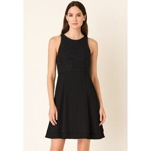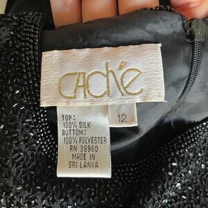 Vintage Cache Black Silk Beaded Cocktail Formal Dress 12 Fit and Flare Modest