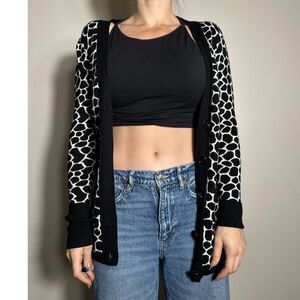 Vintage Cache Black White Animal Print Cardigain Size XS