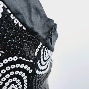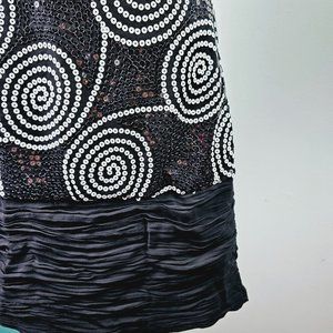 Vintage Cache Black White Sequin Satin Mini Halter Party Dress, Sz 6