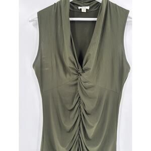 Vintage Cache Blouse Womens Large Army Green Sleeveless Ruched V Neck Stretchy