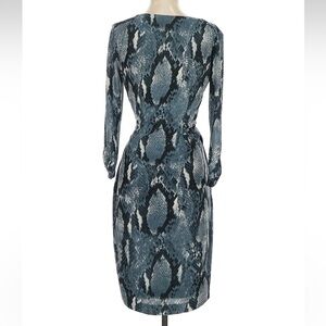 Vintage Cache Blue Grey Snakeskin Print Jersey Faux Wrap Dress Size Small S