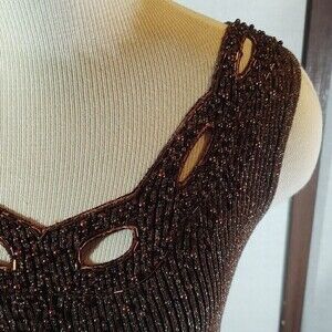 Vintage Cache Brown Sparkly Beaded Top Sz S