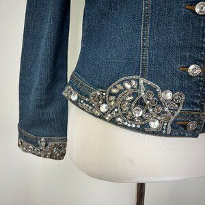 Vintage Cache Denim Jean Jacket Rhinestones Sequin Jouer Aux Echecs collab