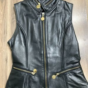 Vintage Cache Fitted Black Leather Vest Size Medium
