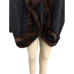 Vintage Cache Fur Trimmed Luxe Winter Wrap Coat Sweater Jacket Made In Korea