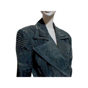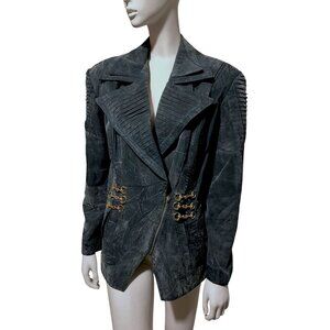 Vintage Cache Jacket L Fitted Horsebit Power Shoulders Faux Suede Rock Indie