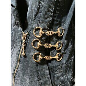 Vintage Cache Jacket L Fitted Horsebit Power Shoulders Faux Silk Rock Indie