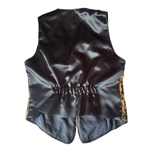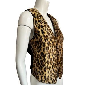 Vintage Cache Leopard Fur Print Lined Vest Full Front Zip Women's Size Medium