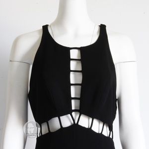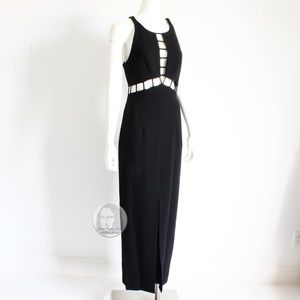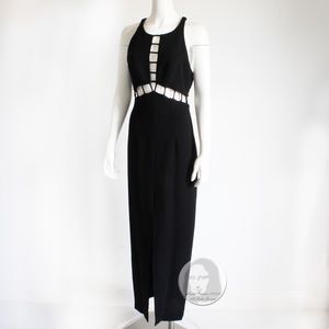 Vintage Cache Maxi Dress with Cut Outs Sexy Black Long Formal Dress Size 10