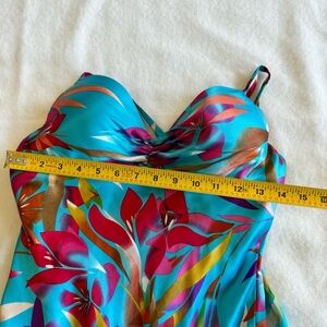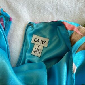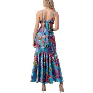 One of a kind, vintage piece! Maxi length 61”-63” adjustable strap. Soft silk material. Polyester partial lining material. Bra built it. Size 8. Pit to pit 14”.