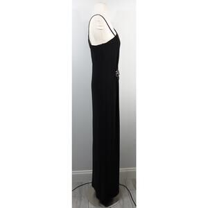Vintage Cache One Shoulder Black Matte Jersey Crystal Formal Dress Gown