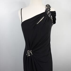 Vintage Cache One Shoulder Black Jersey Grecian Crystal Formal Dress Gown New 6