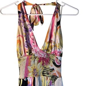 Vintage Cache Pink Smocked Plunge Halter Dress Silk Size 4