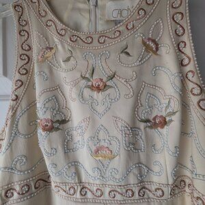 Vintage Cache' Semi-formal Dress Size 4 Beige with Beaded and Embroidered Design