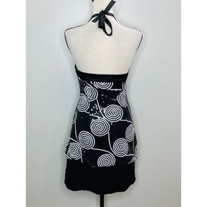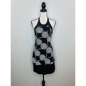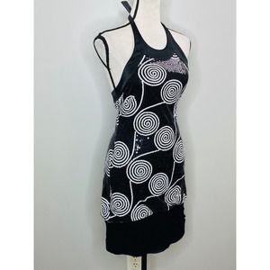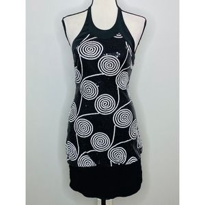 Vintage Cache Black and White Sequin Swirl Print Halter Top Mini Cocktail Dress Women 2 Semi Formal Vegas Party 90s Y2K New Years Eve NYE