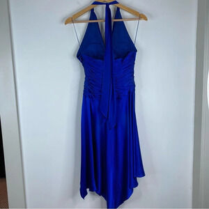 Vintage Cache Silk Dress Halter Scarf Hem Y2K Fairy Retro Ruched Prom Cerulean
